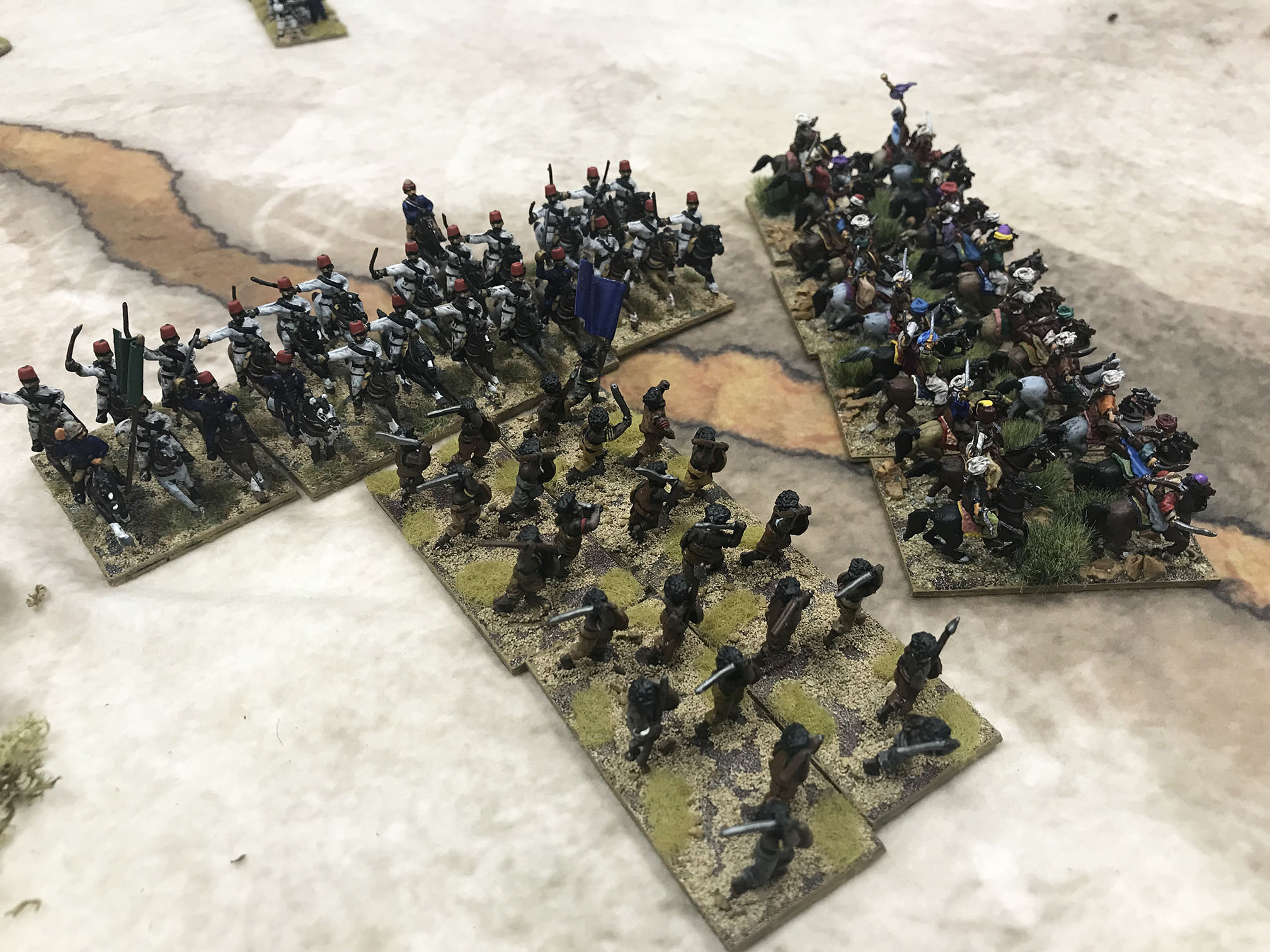 The Mahdists and Fuzzy Wuzzies threw themselves at the cloumn's units with reckless abandon and at one point looked like they might win the game. Surprisingly, the Bashi-bazouks and the slavers, who were the lowest quality units on the board, held for as long as possible, which threw a wrench into the Mahdist plans. There was so much action happening across the board that it was hard to focus on the immediate threats! The Egyptian column, however, survived all of the charges and while the losses were heavy, they were able to escape the trap. Despite not having played this game in quite some time, things went suprisingly well, with just a bit of time spent looking up rules, particularly for a couple of weird situations that we had come up. There's been some discussion that we need to get back to this sooner rather than later, so for the next time we'll probably use some British forces for a change of pace.