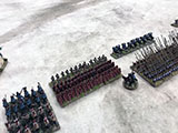 Hard to believe it's been almost 18 months since our last BFE2 game! In this scenario the local train used to support offensive operations has been under fire from some entrenched positions on a ridge. British forces, including some Sudanese and Indian units, have assembled to attack the position in the flank. However, a large Mahdist force has gathered, knowing that their enemy will be forced to attack to reopen the rail line. The Anglo-Egyptian forces started off in a large square with cavalry support, but after a few moves broke into individual companies. That's when the Mahdists decided to launch their all out attack, which was way too early instead of letting them advance into the rocky areas before attacking. Too late!