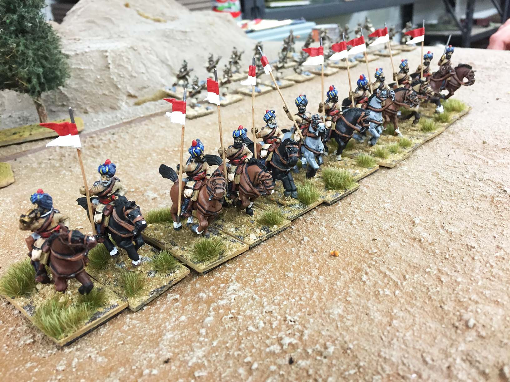 The Pathans counterattacked, but at a critical moment in the game and the stuff of gaming legends, the squadron of Bengal Lancers formed up in range of the Pathans, took two rounds of fire with no casualties, then charged home, routing a Pathan unit and creating a hole in their defenses.