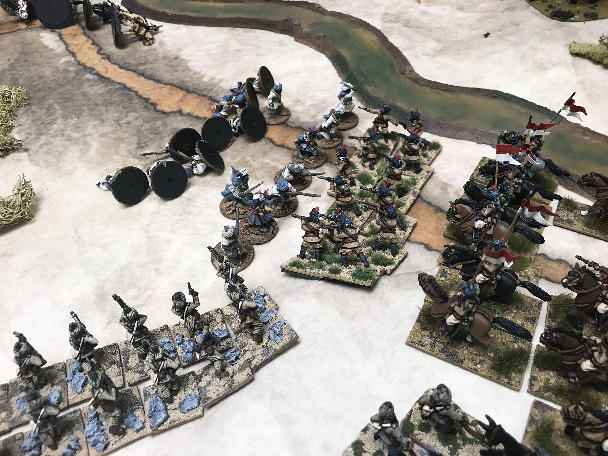 There were some real exciting charges, fights over walls, cavalry charges, and more that reminded us that we really need to play this game a lot more! The deciding factor was when a wild fire event occurred and started to move across the board. By the end of the game it had overrun the outpost that the British forces were supposed to rescue! While the British defeated several large attacks, by the end if the game they were carrying more wounded than they had effectives. One last attack cleared a building next to the compound where the leader was located, but the British attack simply could go no further. At that point we had to stop the game and it was declared a Pathan victory.