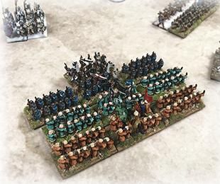 With five players this time and needing something that could be set up without a lot of work, we went with a Saracens vs. Crusaders battle using Warmaster Medieval. We decided to use all of the medieval rules this time, which didn't work out too well, so we need to go back and review those more thoroughly for next time! This was one of those games were one side never really got going and this time it was the Saracens. Failed command rolls, blunders, bad combat rolls, etc., were the highlights of this game for the Saracens. Although it remained close for the first few turns and at one point the Saracens were actually ahead in terms of break points, the Saracen players could see the end coming!