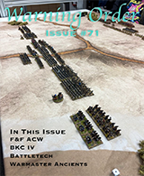 WFHGS is also the home of Warning Order, a free, full color wargames journal that is available to download from this site. Each issue of Warning Order features battle reports from our Friday night games, reviews of board games, figures, and gaming products, gaming analysis, and several regular features plus an editorial. Click on the image to the right or the Warning Order tab in the menu to see all of the available issues.